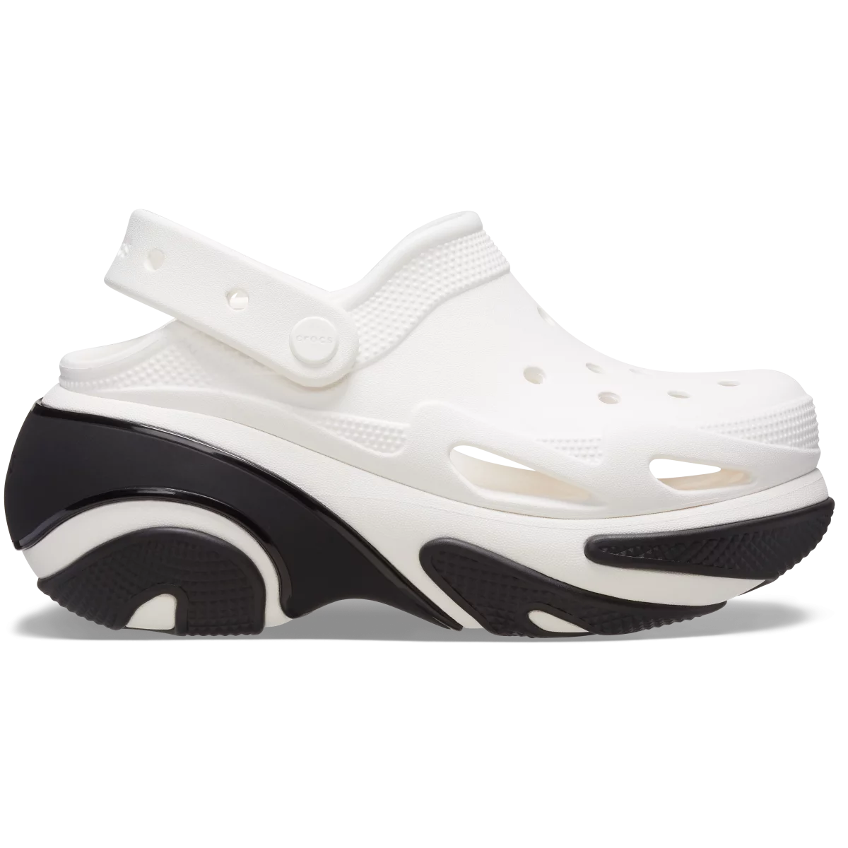 Privuci pažnju u ovim izuzetno hrabrim coklama, koje kombinuju ulični stil i visoku modu, pomažući ti da izraziš svoj jedinstveni ženski stil. Model Bubble Crush Clog odlikuje se vitkim, ženstvenim oblikom, naglašenim gumiranim potplatom sa stilskim detaljima i platformom, spremnom da svaku haljinu podigne na viši nivo. Dizajnirani sa mišlju na samopouzdanje, i zadnji kaiš i gornji deo možeš prilagoditi sa Jibbitz™ ukrasima. Uđi u Bubble Crush Clog i hrabro proslavi sebe!